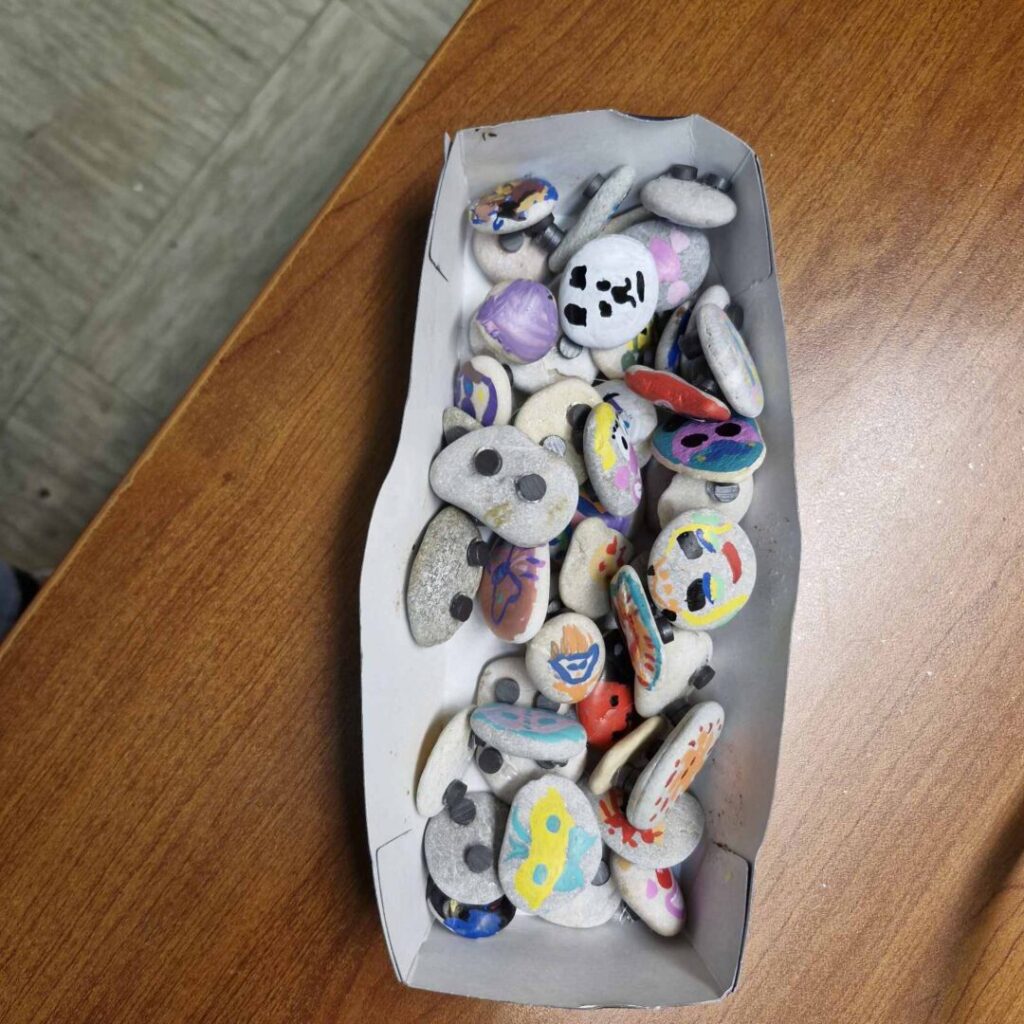 Tijekom radionice izrađivane su bojice od spužvi za plivanje, koje će se koristiti kao ukras na nadolazećim dječjim karnevalima, magnetići od oblutaka ukrašeni akrilnim flomasterima, te privjesci za ključeve sa simbolima meštra, kraljice karnevala, klauna i mornara. Privjesci su izrađeni tehnikom pletenice od vune uz dodanu sličicu, čime je svaki rad dobio poseban karnevalski identitet.